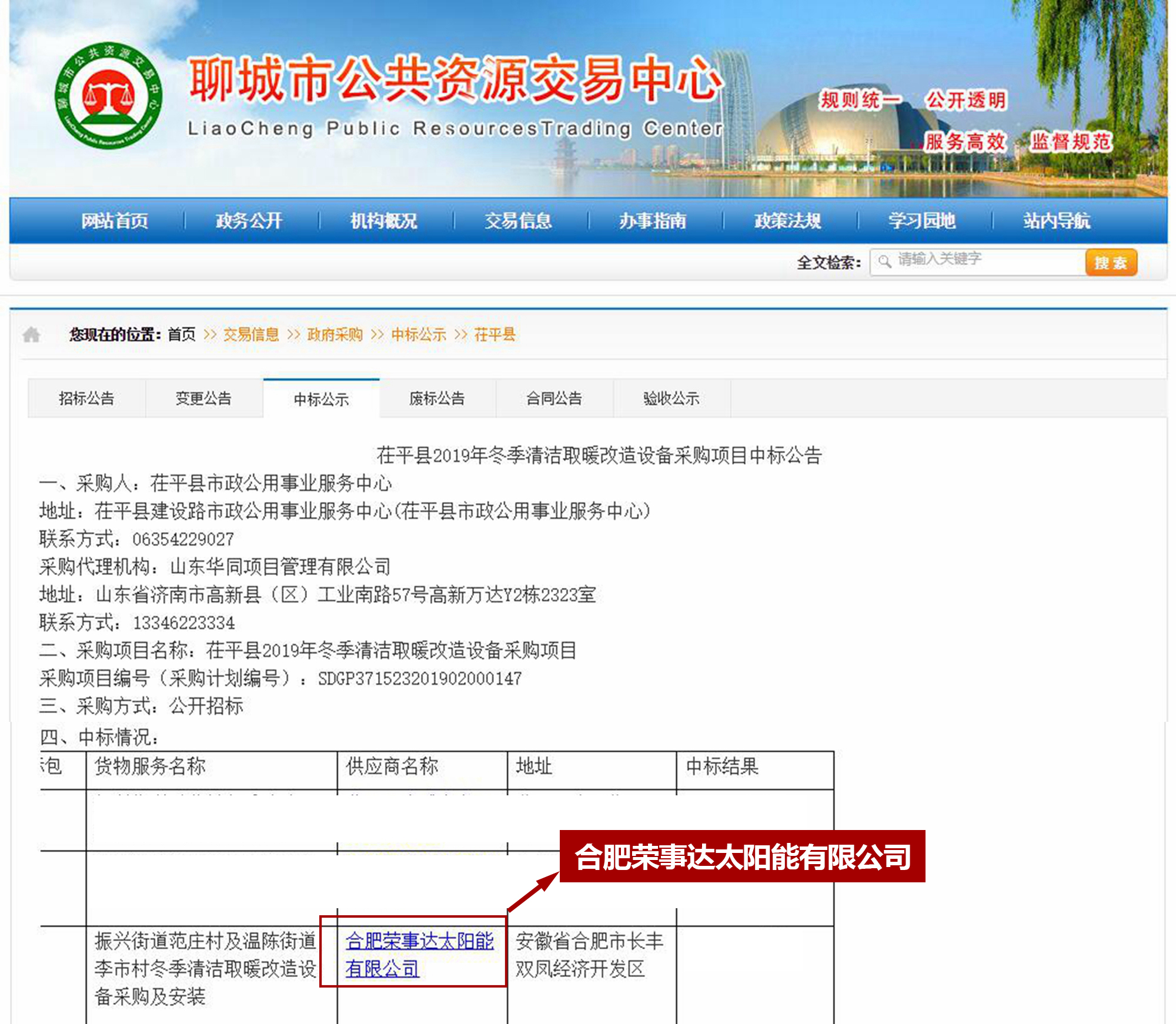 又中一标,7月12日,在山东省最新的政府采购项目公示中,荣事达空气能成功中标山东聊城茌平县2019冬季清洁取暖设备改造项目。不到半个月的时间,荣事达空气能先后斩获甘肃积石山县、山西长子农商行、河北井陉县、山西文水县、河北石家庄灵寿县等多项煤改电项目,成功入围山西太原市煤改电,捷报频传,载誉连连。此次中标产品为荣事达空气能低温热泵热风机,优越产品性能深受现场评审信赖。