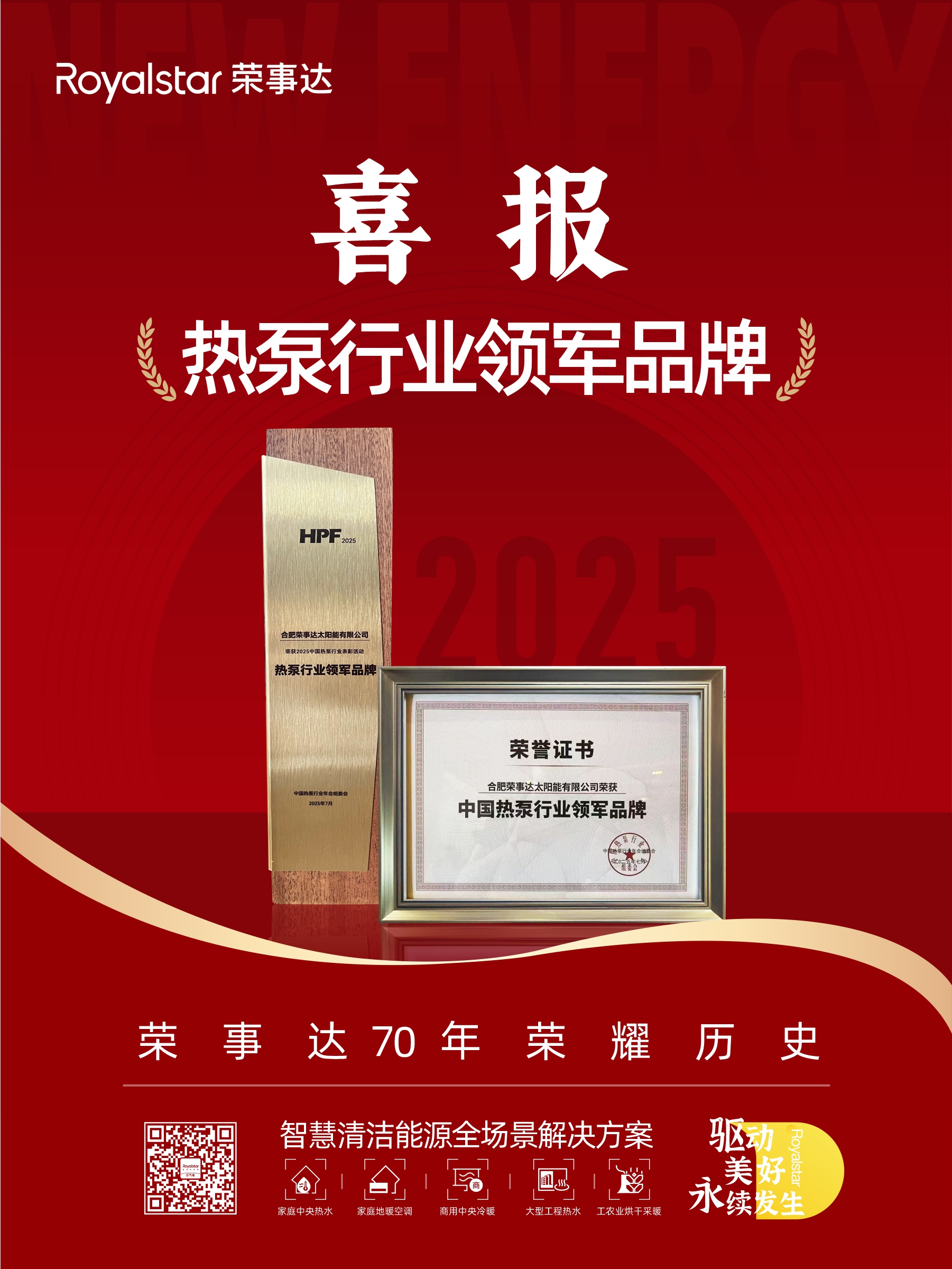三奖加冕!荣事达空气能蝉联“热泵行业领军品牌”,满点综合实力领航绿色发展!