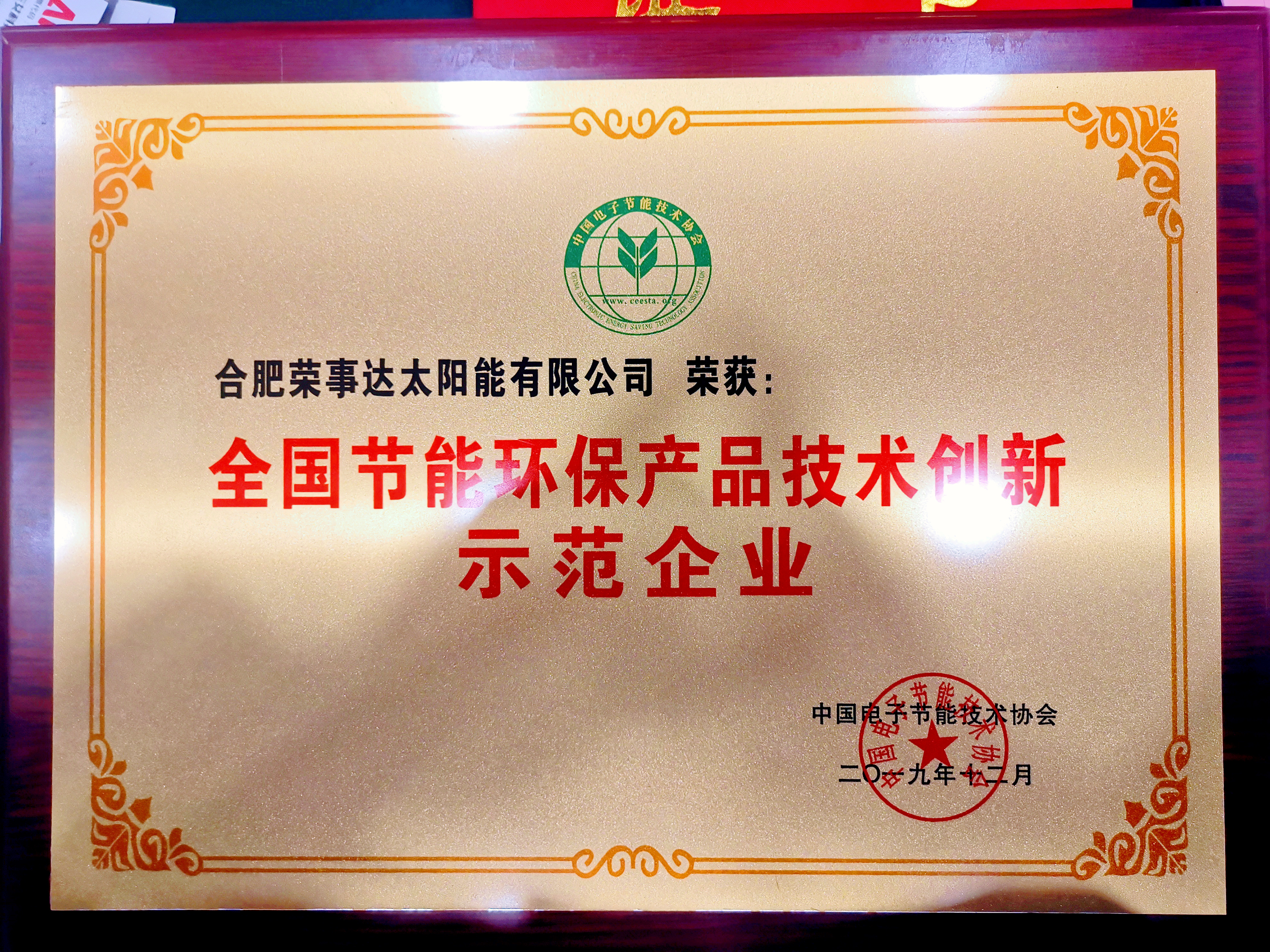【全国节能环保产品技术创新示范企业奖牌】