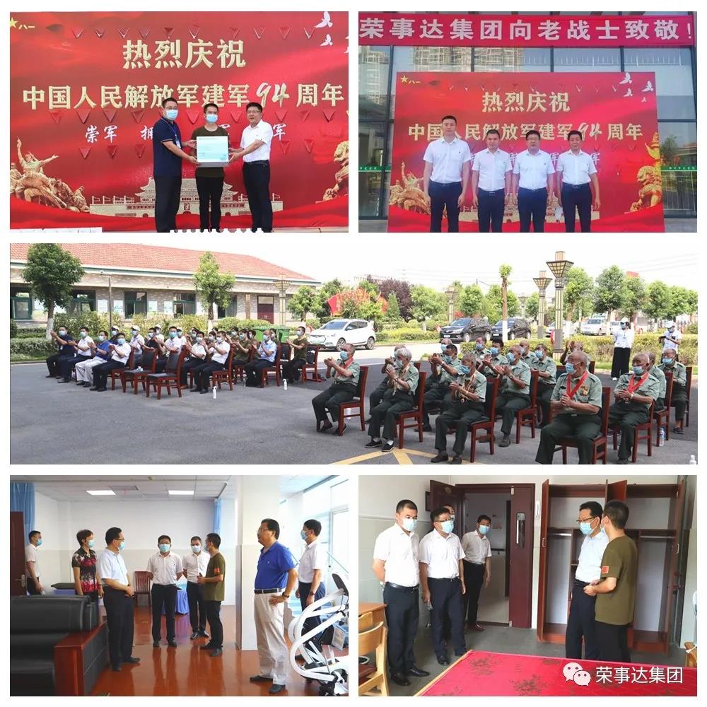 为纪念中国人民解放军建军94周年,弘扬拥军优属的光荣传统,8月1日,滁州市民政局党组书记、局长汪国玲,滁州市退役军人事务局党组书记、局长丁勇带队看望慰问滁州市光荣院的老战士们,向全体老战士以及家属致以节日的问候和崇高的敬意。荣事达集团助理总裁潘启文、荣事达生态圈合作客户滁州市蓝鱼环保科技有限公司董事长吕刚参与了本次慰问活动。