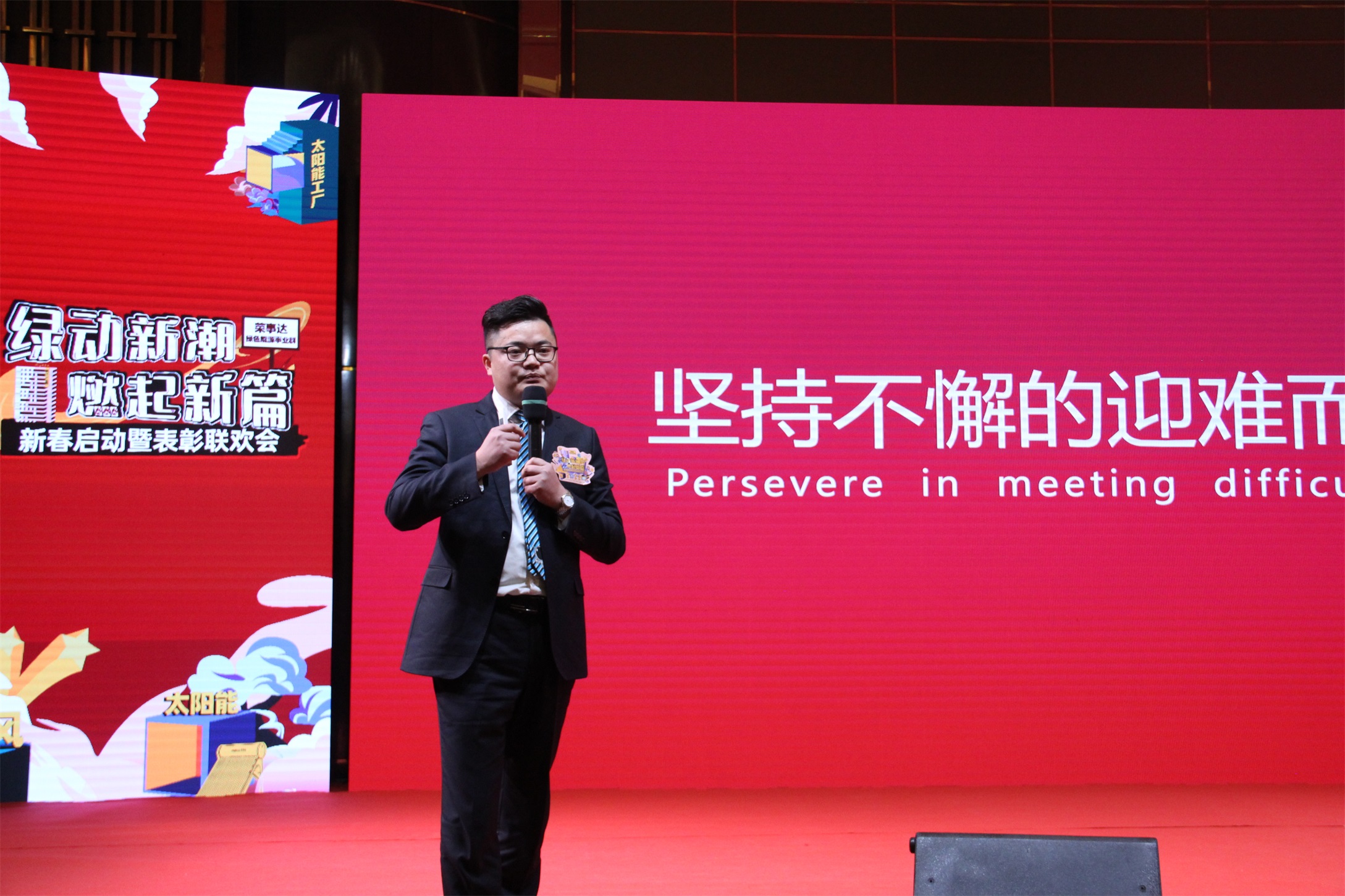 表明决心,立下誓言,君子之诺,此行必践。荣事达绿色能源事业群各代表上台进行宣誓。