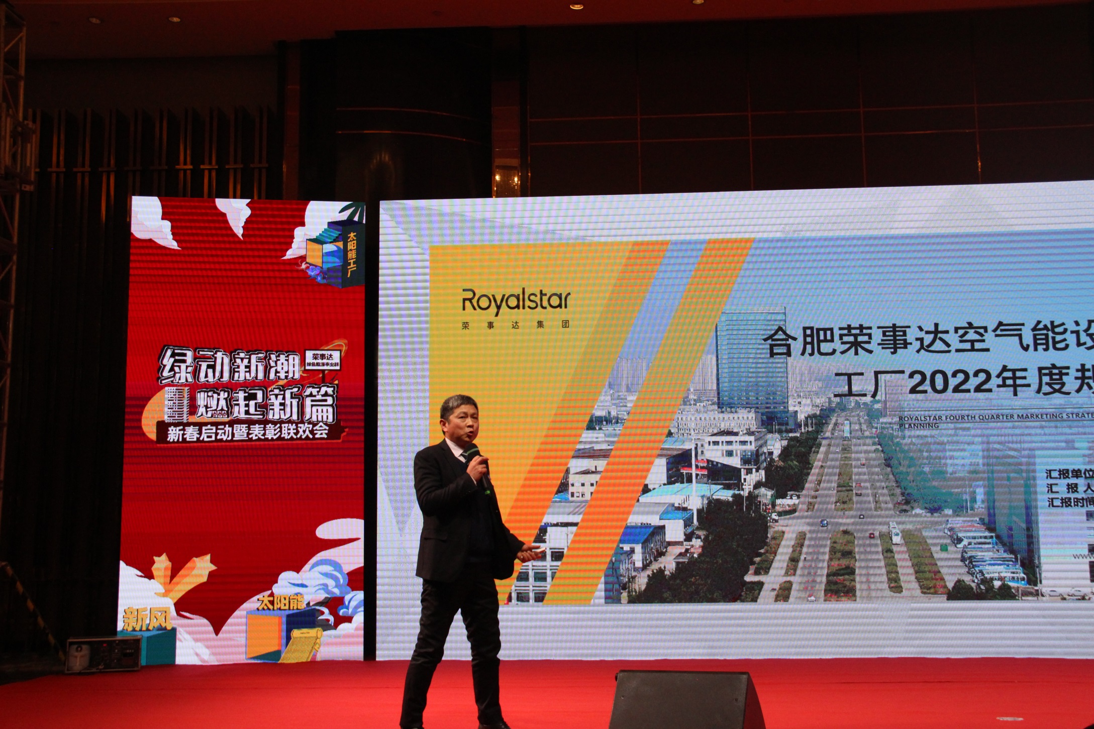 集团副总裁、绿色能源事业群总经理兼空气能电热事业部、太阳能有限公司总经理张会军上台作2022年开年规划。张会军总围绕“势、事、品”三个主题,系统阐释了关于事业群全面发展的规划与方法论。外势、内势皆释放出了良好的发展机遇与势能,各项外事、内事的打通推进决定了发展的恒久力,品格,品质,品牌综合定位了发展的高度,最后,他援引集团主席潘保春的品牌观,对全员提出要求和期待,冀望荣事达品牌事业的美好持续发生。