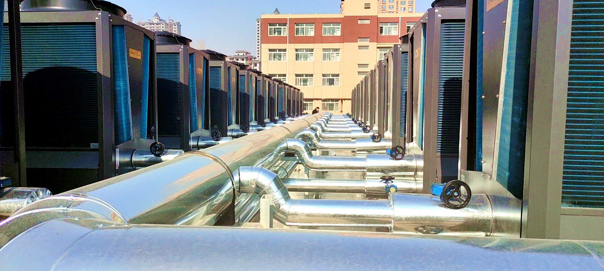 经过与校方的沟通,设计方案敲定后,荣事达空气能总部迅速发货,驻当地团队闻风而动,立马赶赴现场筹划前期的准备工作。随着安装地点的确认与主机运送到位,荣事达空气能的施工团队正式动工,经过三个多月的安装调试,最终赶在2021年冬季到来之前保质保量、提前完成了任务。