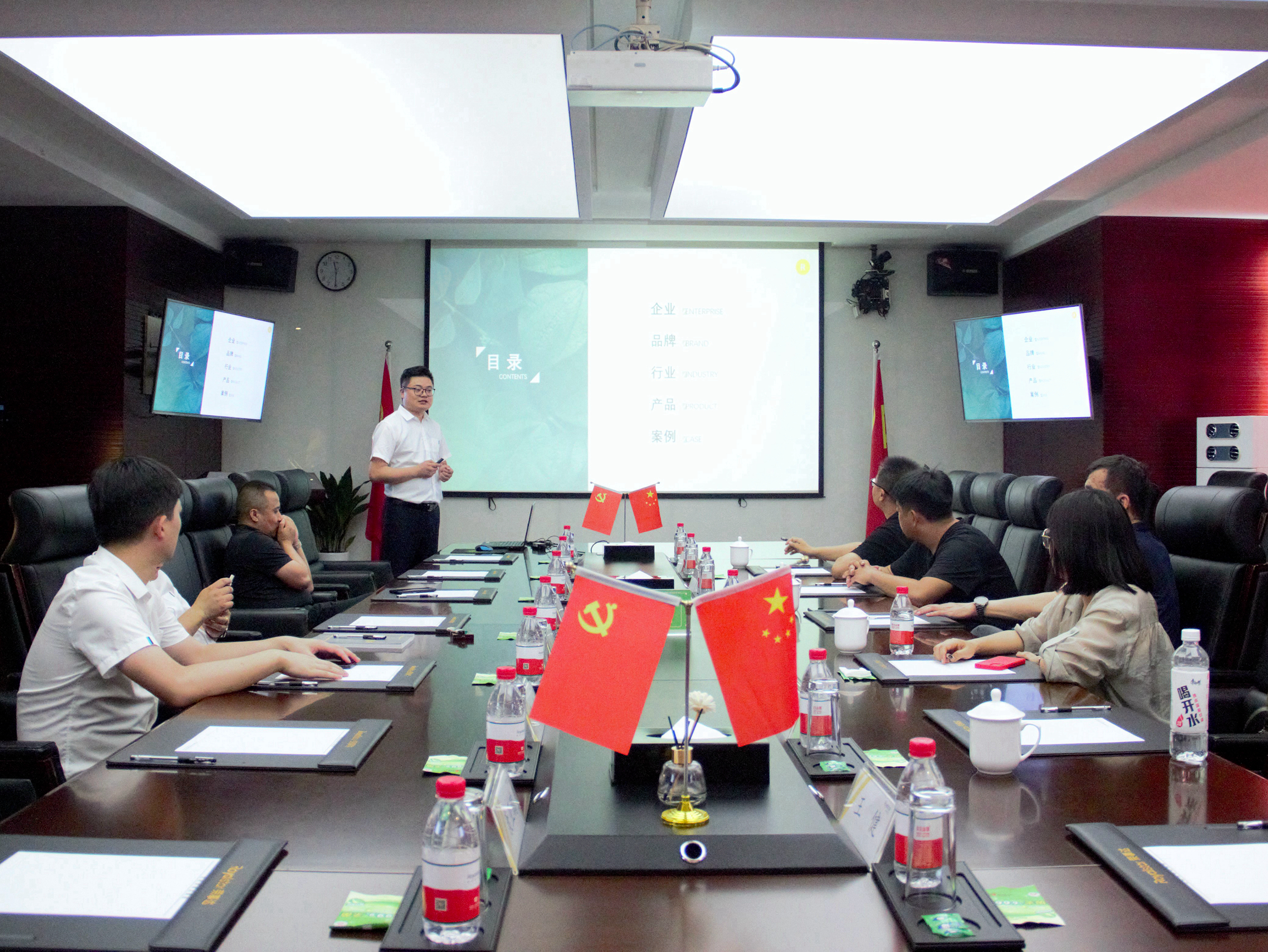 实地调研接近尾声,众人来到集团六楼会议室参加荣事达空气能座谈会。空气能营销总监荀旭主持此次座谈会,负责从荣誉资质、生产实力、创新成果、产品体系等方面对荣事达空气能进行全方位展示,重点介绍荣事达空气能推出的智慧清洁能源全场景解决方案。